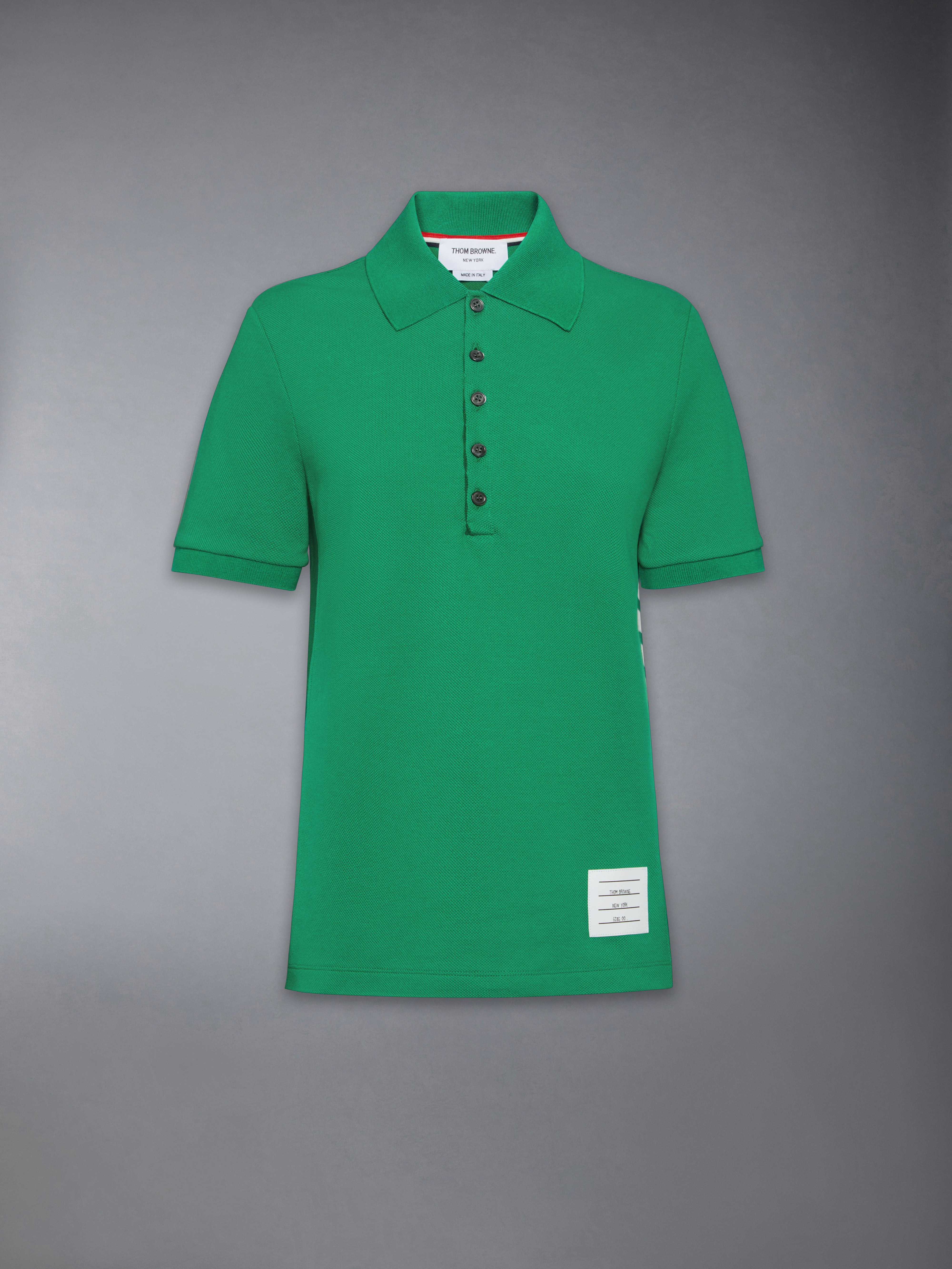 DETAILS & FIT Inspired by East Coast preppy icons, this classic pique polo is a sophisticated take on a traditional silhouette. Emblazoned with our iconic 4-bar detailing, an emblem synonymous with the brand. 4-bar detailing Partial front button placket Name tag applique Signature striped grosgrain loop tab Model is 5'10" (178 cm), wearing size 40 100% Cotton Made in Italy FJP107A-00050-330