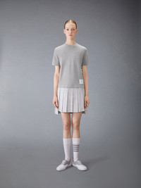 A silhouette that has stood the test of time, our Classic Pique 4-Bar Tee is adorned with signature Thom Browne emblems throughout, and tailored to perfection. Crew neckline 4-bar stripe detail at left side Name tag applique above hem Signature striped grosgrain loop tab at back of neck Model is 5'10" (178 cm), wearing size 40 100% Cotton Made in Italy FJS207A-00050-055