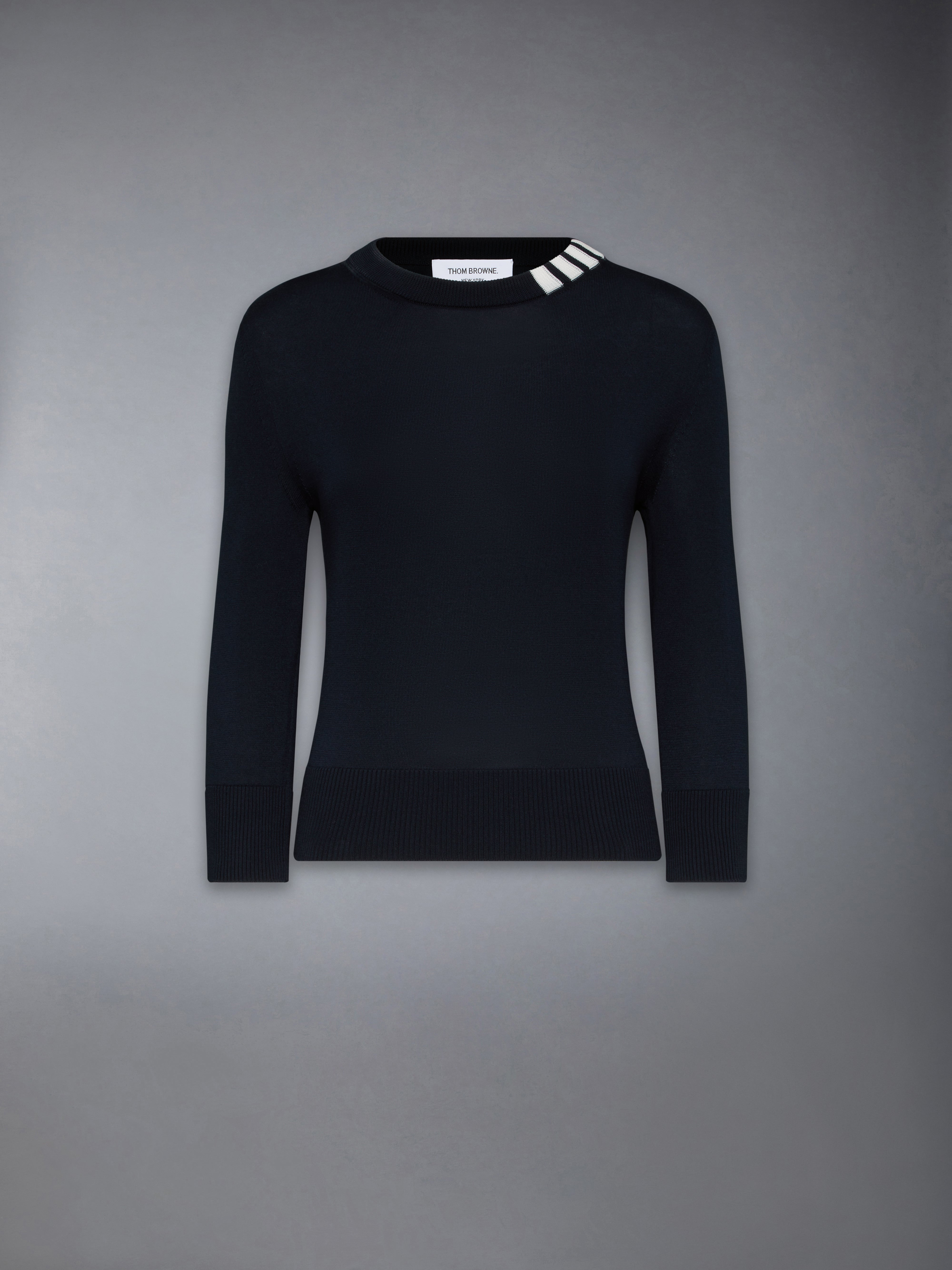 DETAILS & FIT A silhouette that has stood the test of time, this luxe pullover is adorned with signature Thom Browne emblems throughout and tailored to perfection. Layer it over any of our signature dress shirts. 4-bar detailing Buttoned side vents with signature striped grosgrain trim Buttoned cuffs with signature striped grosgrain trim Signature striped grosgrain loop tab Model is 5'10" (178 cm), wearing size 40 100% Cotton Made in Italy FKA487A-Y3036-415