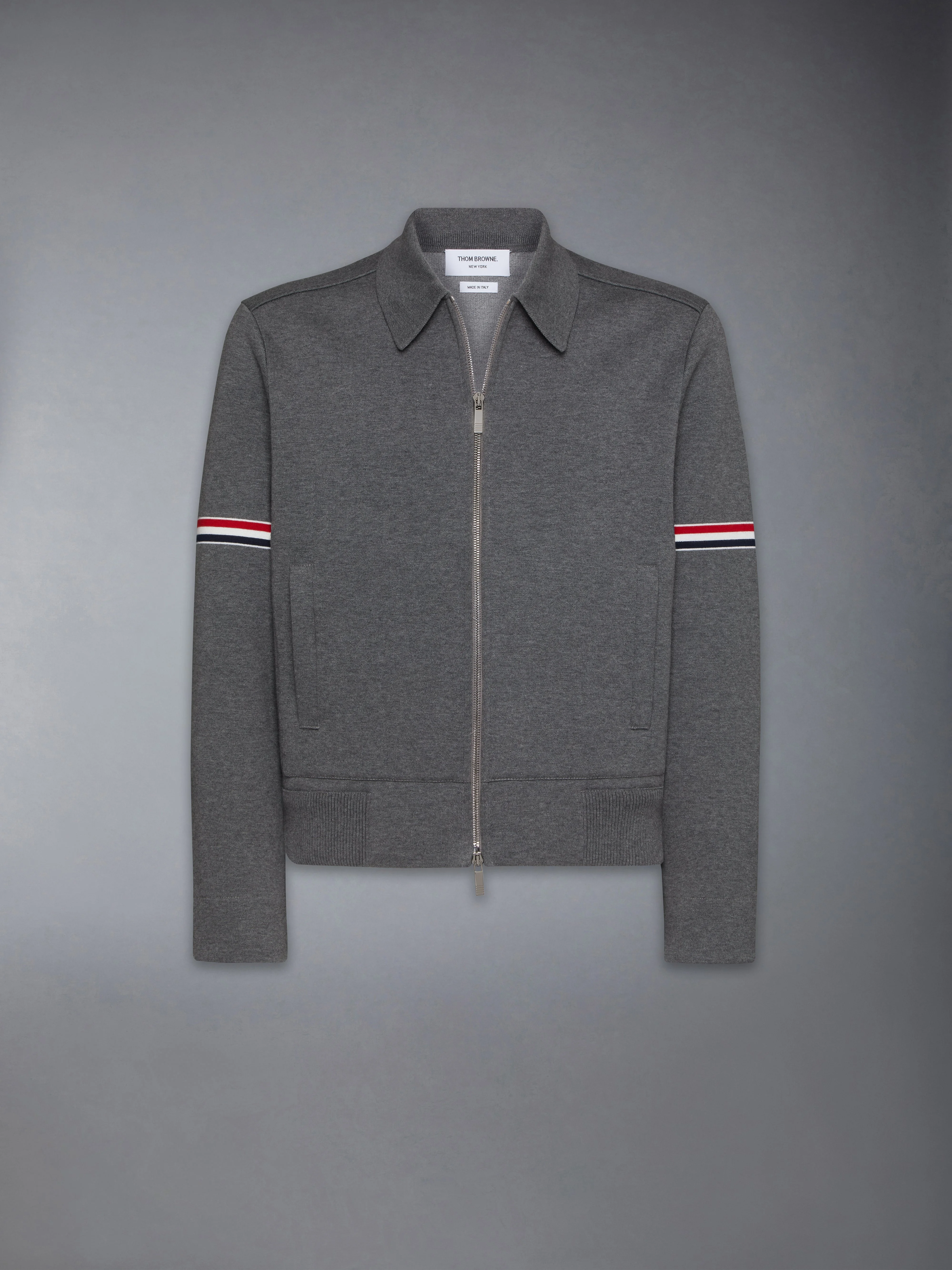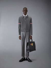 DETAILS & FIT Impeccable craftsmanship, luxurious fabric, and distinctive Thom Browne emblems make this jacket an essential garment for your seasonal wardrobe. Crafted with fine cotton fabric made lightweight enough for season-less comfort. Pair it with any of our trousers or pleated skirts. Front zip closure Grosgrain armbands 2 Front slip pockets Signature striped grosgrain loop tab Model is 6'1" (185cm), wearing size 1 98% Cotton, 1% Polyamide, 1% Elastane Made in Italy MKJ133A-Y3004-035