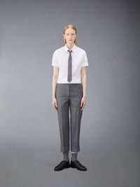 DETAILS & FIT A Thom Browne essential, our Poplin Short Sleeve Tucked Blouse exhibits quality craftsmanship and meticulous tailoring. Front button closure Signature striped grosgrain loop tab at back of neck Seamed back yoke with locker loop Model is 5' 10" (178cm), wearing size 40 100% Cotton Made in Italy FLL138A-03113-100