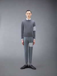 DETAILS & FIT A signature Thom Browne emblem defines our Classic Cashmere 4-Bar Pullover. Inspired by varsity stripes, our 4-Bar design is Thom Browne’s most sought-after icon. Presented in 100% rich cashmere, this pullover is a longstanding staple. Crew neckline 4-bar stripe detail at left sleeve Buttoned side vents and cuffs with signature striped grosgrain trim Signature striped grosgrain loop tab at back of neck Model is 6' 1" (185cm), wearing size 1 100% Cashmere Made in the UK MKA001A-00011-022