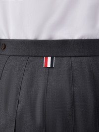 DETAILS & FIT Inspired by East Coast preppy icons but reimagined with inventive proportions and quality craftsmanship, our Classic Dropped Back Below Knee Pleated Skirt is a fresh take on a traditional silhouette. Adjustable Buttoned side tab closure Dropped back with signature striped grosgrain trim Signature striped grosgrain loop tab at back waist Model is 5' 10" (178cm), wearing size 40 100% Wool Lining: 100% Cupro Made in Italy FGC400V-00626-025