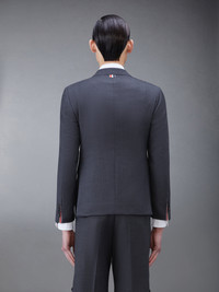 DETAILS & FIT Epitomized by Thom Browne himself, our classic Twill Suit and Tie was inspired by East Coast preppy icons but reimagined with inventive proportions and quality craftsmanship. Since its introduction, the suit has maintained its remarkable influence and integrity. Front button sport coat closure Notched lapels 2 flap front pockets, single chest pocket Classic slim tie Tab front trouser closure Creased pant legs Wide cuffs Slip side pockets, Button-fastening jetted hip pockets Striped side pockets with interior pocket and name tag Adjustable buttoned backstrap Signature striped grosgrain loop tabs at back of neck and waist ClassicFit 1 Model is 6' 1" (185cm), wearing size 0 100% Wool Lining: 100% Cupro Made in Italy MSC001A-00626-025