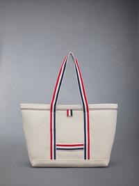 Off White Small Tool Tote Bag Double Face Cotton Canvas Grosgrain Straps Exterior Name Tag Clasp Closure Lining Interior Zip Pocket Signature Grosgrain Loop Tab 40x23x12 cm 98% Cotton, 2% Calf Leather Made in Italy MAG272A-07164-114