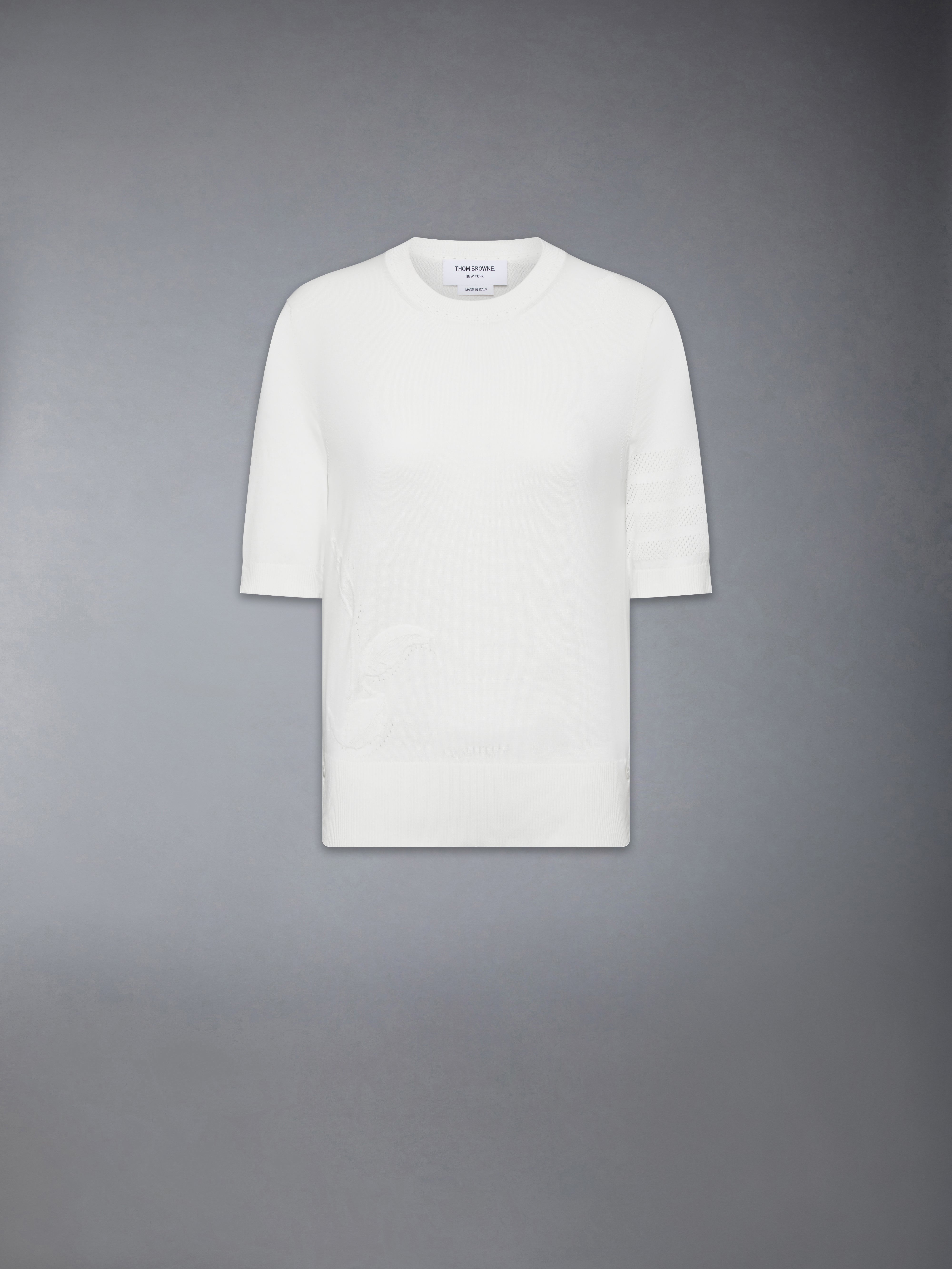 FEATHER INTARSIA POINTELLE 4-BAR TEE