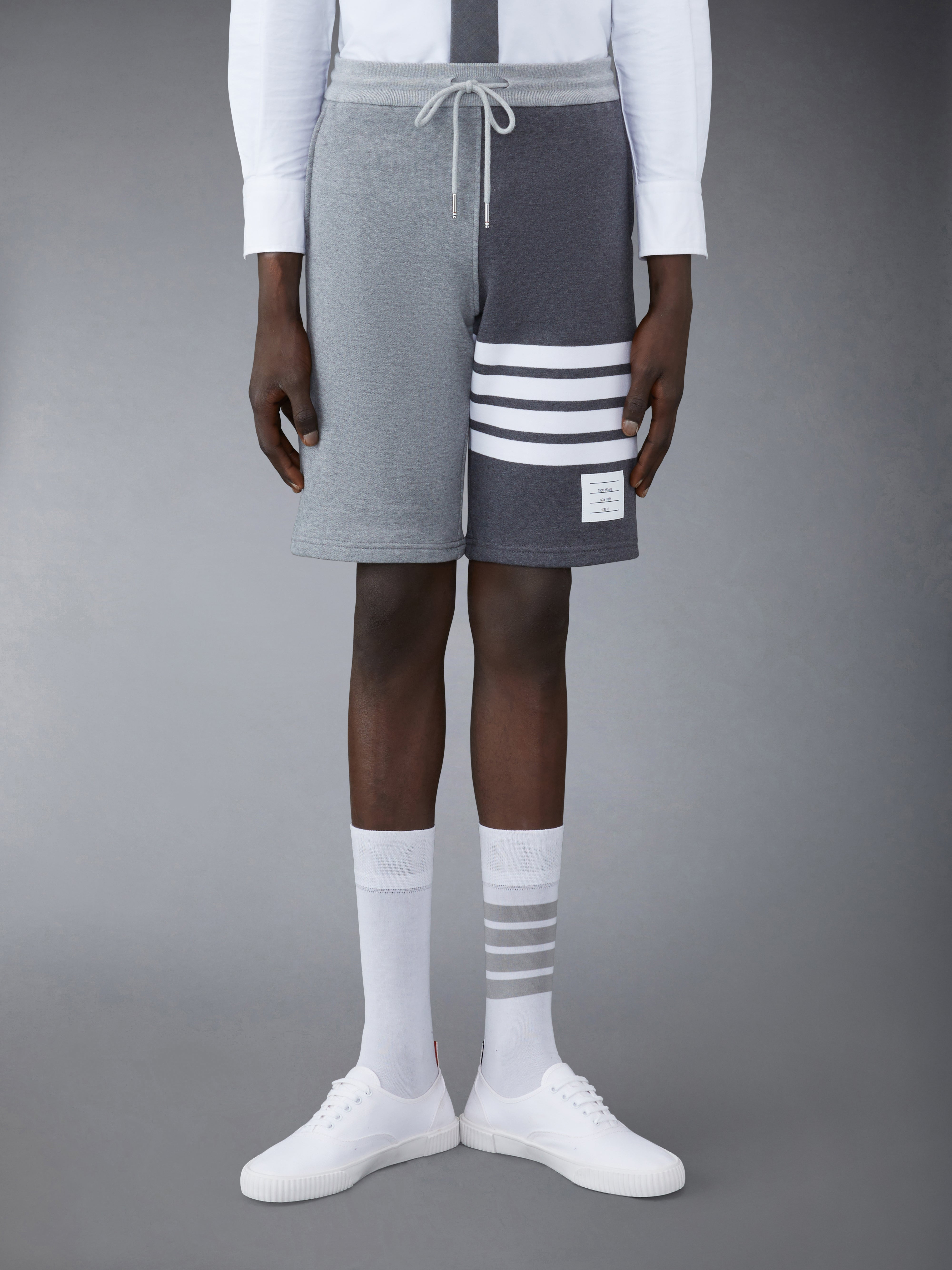 DETAILS & FIT Leisurewear made artful. Our Classic Loopback 4-Bar Sweatshorts is adorned with our iconic 4-Bar stripe detailing emulated after varsity stripes. A drawstring waist provides ultimate comfort. Drawstring waistband with silver tone aglets Engineered 4-bar stripe detail at left thigh Name tag applique above left cuff Slip side pockets Single back welt pocket Signature striped grosgrain loop tab at back waist Model is 6' 1" (185cm), wearing size 0 100% Cotton Made in Japan MJQ012F-00535-982