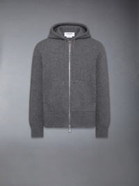 Stay warm for the coming seasons in this evocative sweater, featuring two geese at rest—one pondering life's next journey, the other inquiring, "Where to next?" Capturing the essence of shifting seasons, new beginnings, and growth, this piece invites you to embrace what comes. Front zip closure Drawstring hood Side slip pockets Buttoned cuffs with signature striped grosgrain trim Model is 6'1" (185cm), wearing size 1 100% Cotton Made in Italy MKT020A-Y1029-035