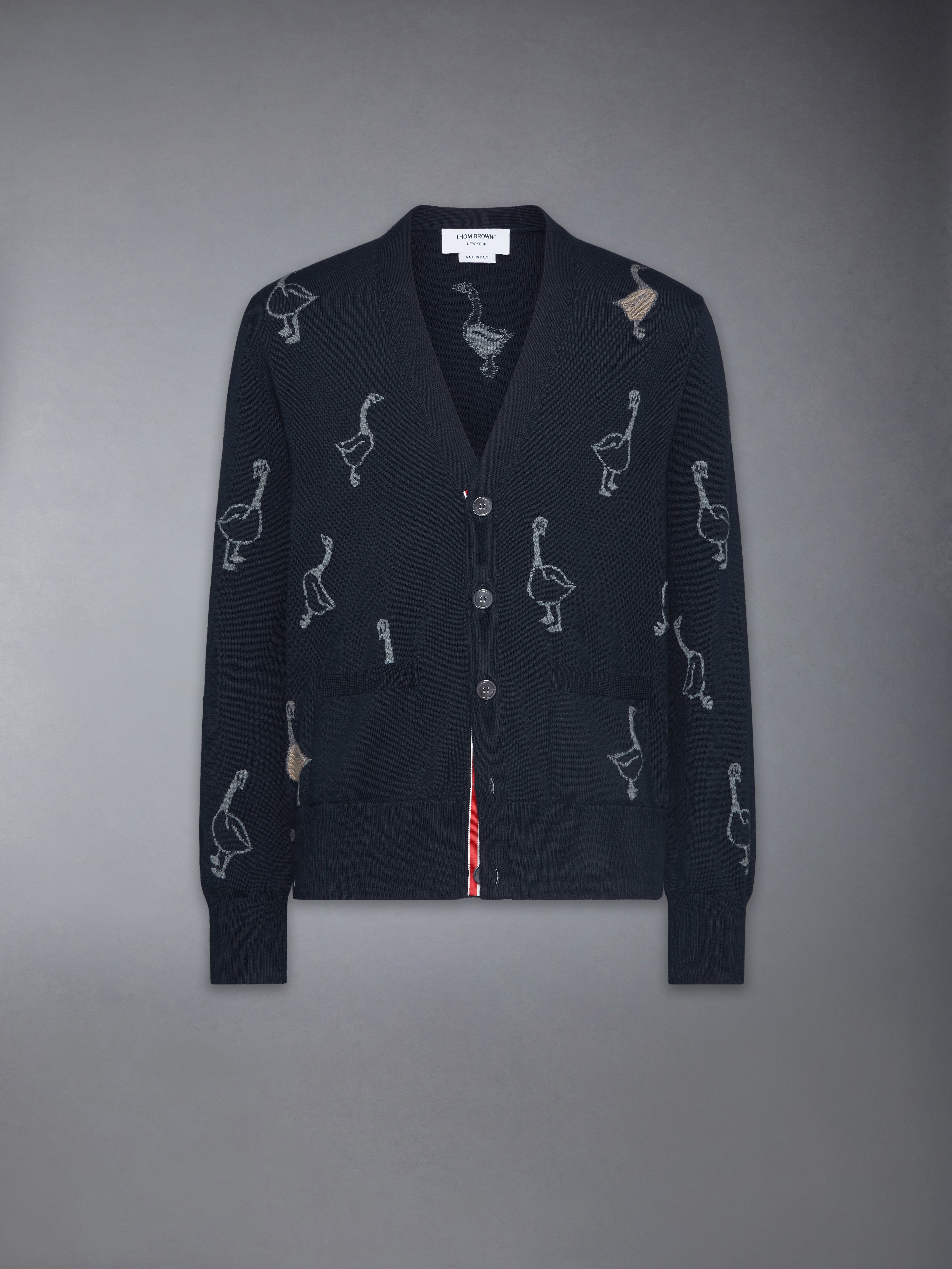 GEESE INTARSIA MERINO WOOL RELAXED FIT V NECK CARDIGAN