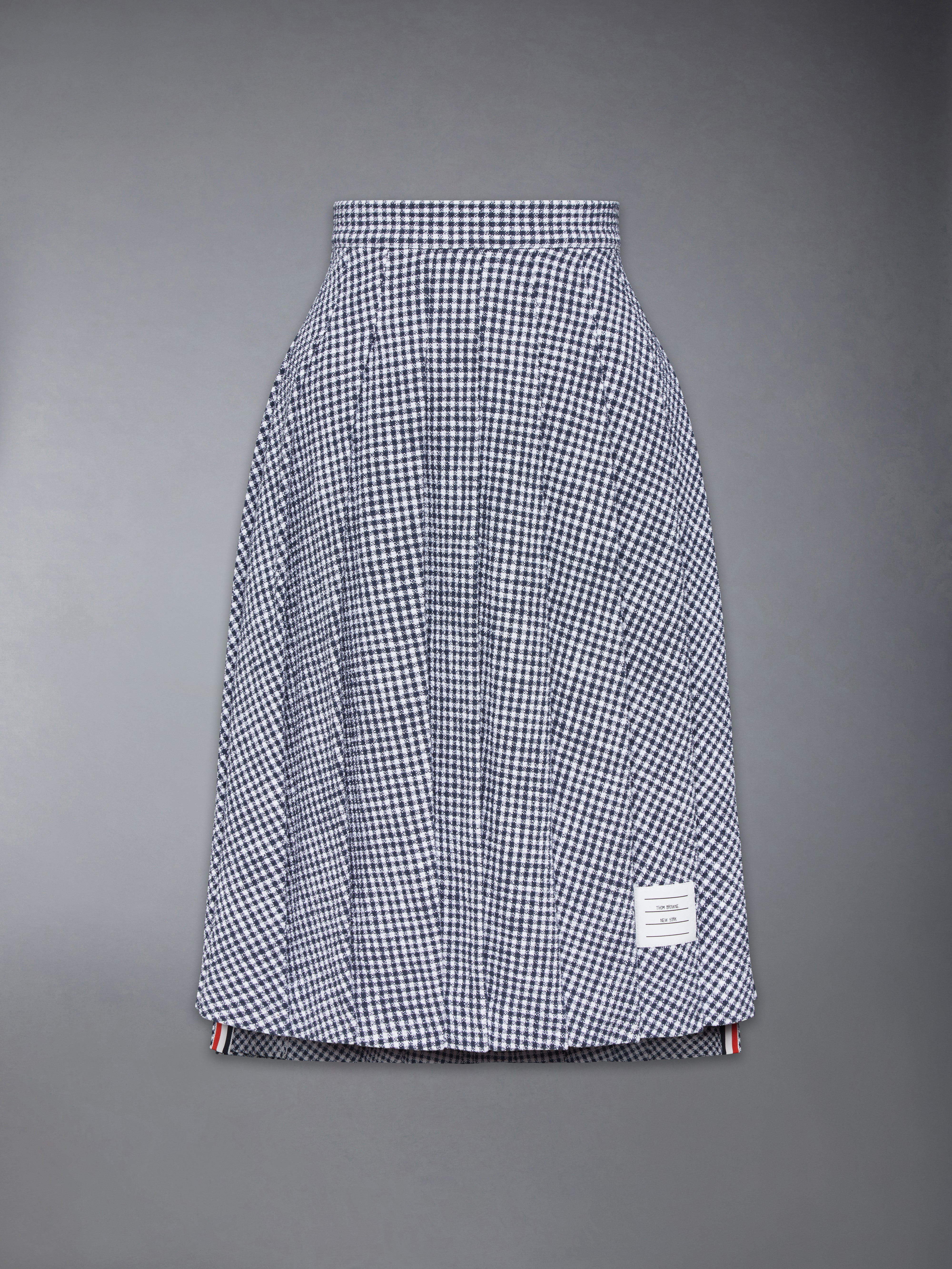 GINGHAM COTTON TWEED PLEATED SKIRT