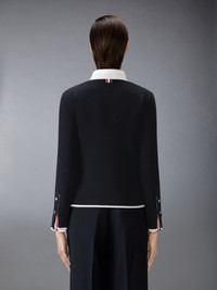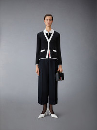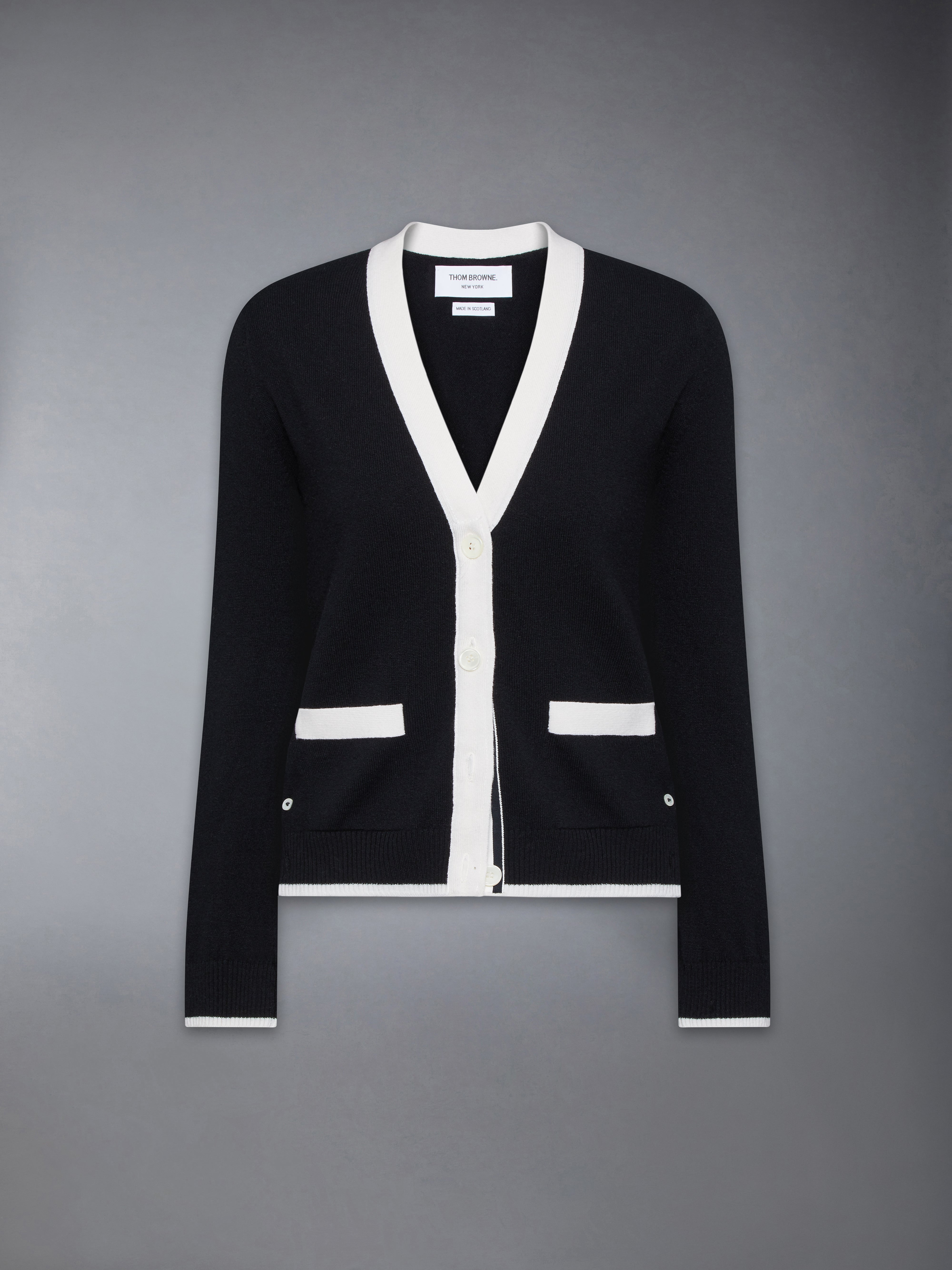 An elegant cardigan with versatile styling options—dress it up with a bow tie for formal events or down with a dress shirt for everyday wear. Designed with functional pockets, it offers the perfect balance of sophistication and practicality. Front button closure with striped grosgrain placket 2 Front slip pockets Buttoned cuffs with signature striped grosgrain trim Buttoned side vents with signature striped grosgrain trim Signature striped grosgrain loop tab Model is 5'10" (178 cm), wearing size 40 100% Cashmere Made in Italy FKC581A-Y2001-001