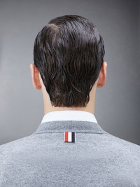DETAILS & FIT A signature Thom Browne emblem defines our Classic Cashmere 4-Bar V-neck Cardigan. Presented in 100% rich cashmere, this cardigan is a longstanding staple. V-neck Front button closure with striped grosgrain placket 4-bar stripe detail at left sleeve Buttoned side vents and cuffs with signature striped grosgrain trim Signature striped grosgrain loop tab at back of neck Model is 6' 1" (185cm), wearing size 1 100% Cashmere Made in the UK MKC001A-00011-055