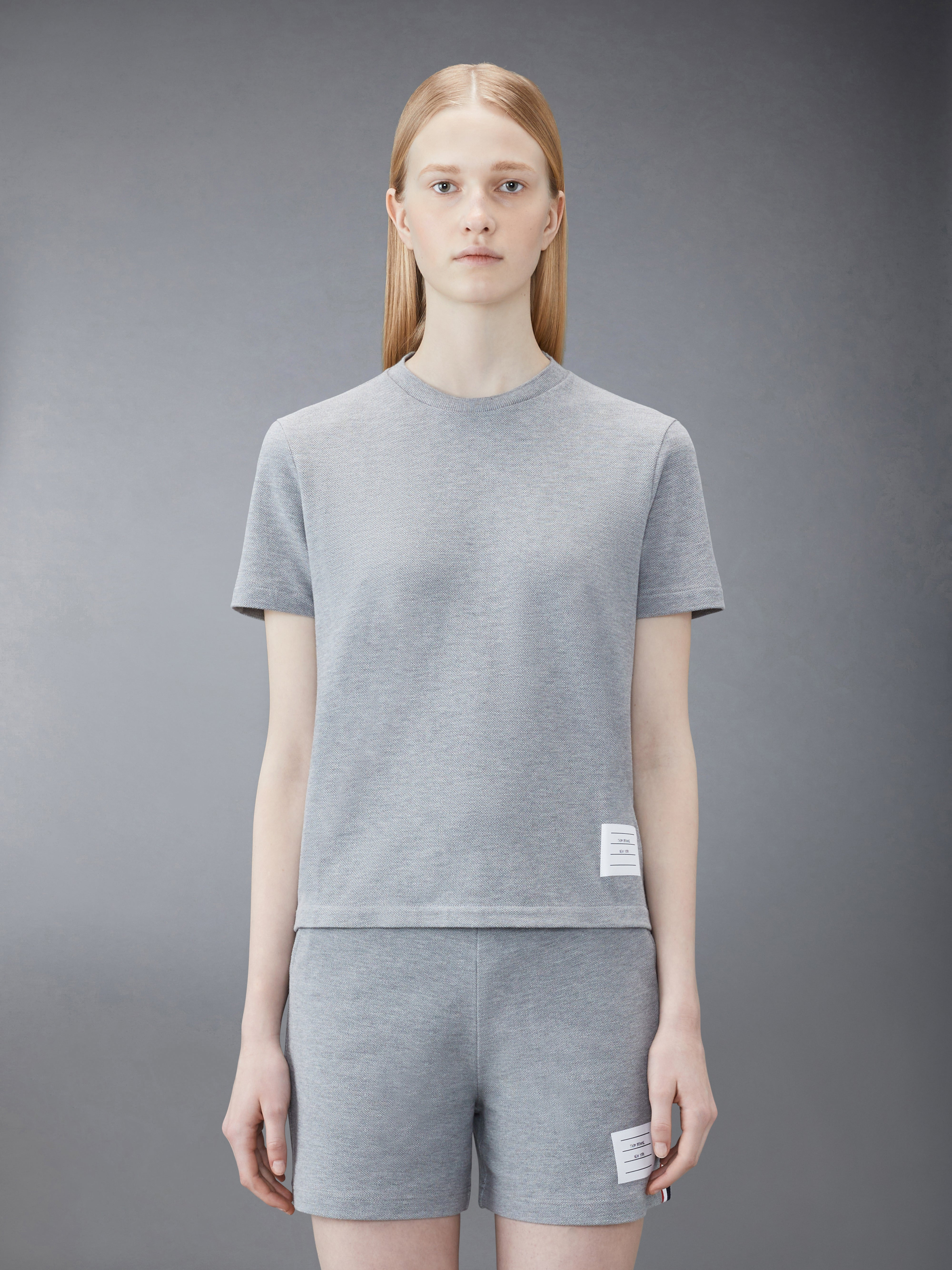 Light Grey Classic Cotton Pique Relaxed Fit Center Back Stripe Short Sleeve Tee