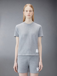 DETAILS & FIT A silhouette that has stood the test of time, our Classic Pique Stripe Tee is adorned with signature Thom Browne emblems throughout and tailored to perfection. Crew neckline Name tag applique above hem Center back stripe detail Buttoned side vents with signature striped grosgrain trim Signature striped grosgrain loop tab at back of neck Model is 5' 10" (178cm), wearing size 40 100% Cotton Made in Italy FJS013A-00050-055 - SLEEVE LENGTH: 5.0cm - Shoulder Width: 40.0cm - Length: 62.0cm - WAIST: 93.0cm - BUST: 93.0cm