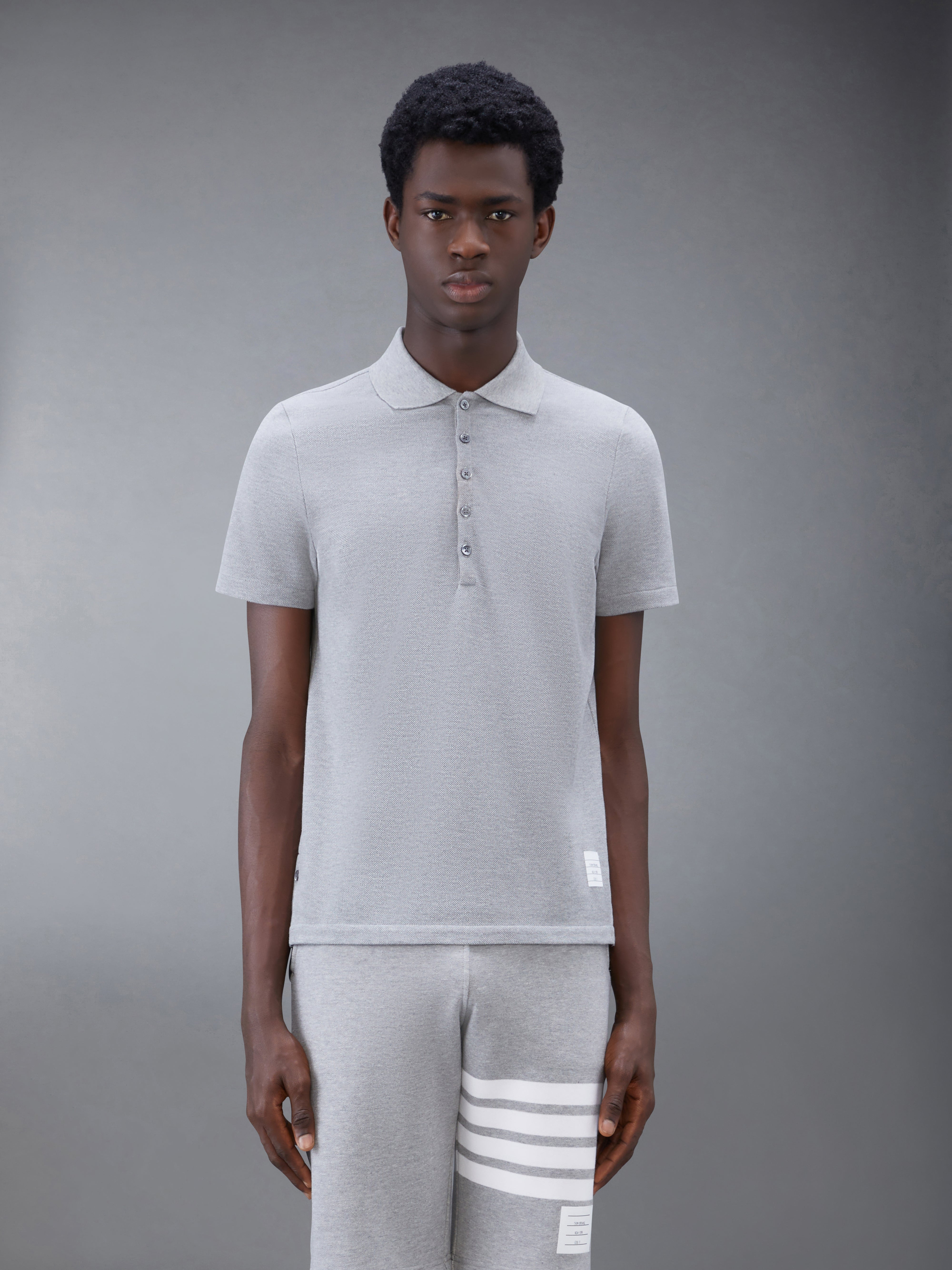 Light Grey Cotton Pique Center Back Stripe Relaxed Fit Polo
