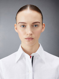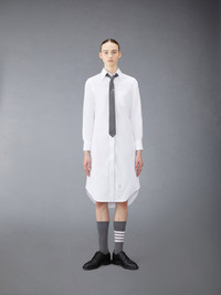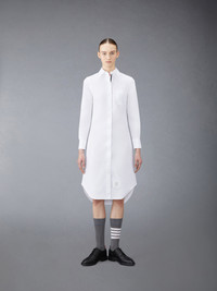DETAILS & FIT Our Oxford Grosgrain Placket Knee length Point Collar Shirtdress. Crafted from the finest fabric, wear this silhouette alone as an everyday staple or as a base layer for suiting. Front button closure with striped grosgrain placket Point collar Barrel cuffs Single chest pocket Name tag appliqué above hem Seamed back yoke with locker loop Model is 5' 10" (178cm), wearing size 40 100% Cotton Made in Italy FDS001E-F0313-100