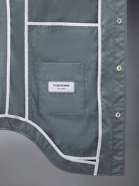 DETAILS & FIT Our Nylon Armband Shirt Jacket is a light layer perfect for cooler months. Snap button closure Signature striped grosgrain armbands Single Patch pocket Seamed back yoke with locker loop Signature striped grosgrain loop tab at back of neck Model is 6' 1" (185cm), wearing size 0 100% Polyamide Lining: 100% Cotton Made in Japan MJO067A-04391-035
