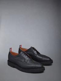 DETAILS & FIT Crafted with the highest quality of classic shoemaking, our Pebble Grain Longwing Brogue is a staple in Thom Browne's legacy. Features an elongated toe, tonal crepe sole, and streamlined silhouette. Lace up closure Perforated broguing throughout Tonal crepe sole Leather insole and lining Signature striped grosgrain loop tabs at heels Upper: 100% Calf Leather Sole: 100% Rubber Lining: 100% Calf Leather Made in the UK MFD002B-00198-001 - HEEL: 3.0cm