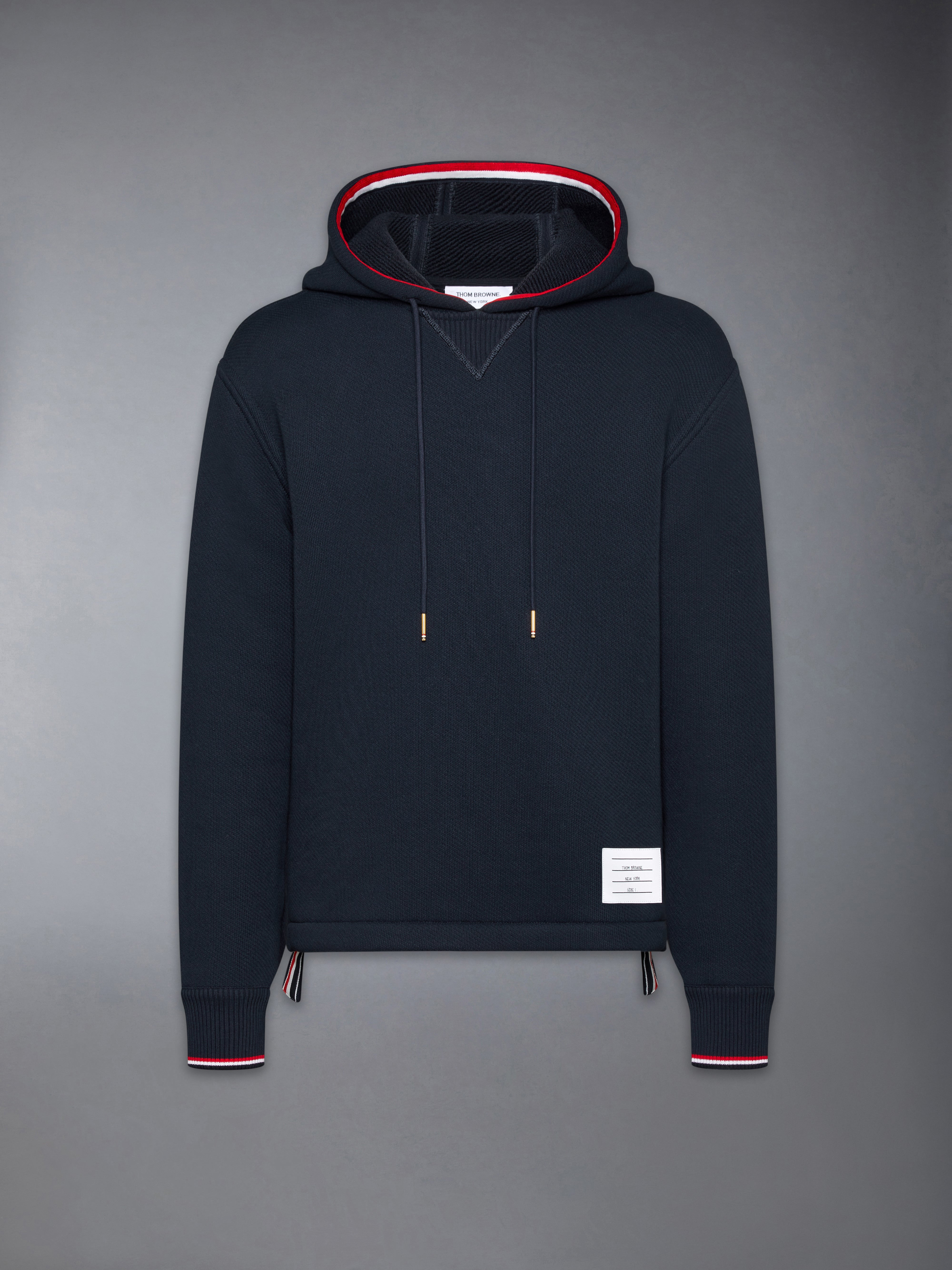 A hoodie you'll reach for again and again made with an oversized fit for ultimate comfort and signature Thom Browne emblems for a touch of luxury. Pair it with our Washed Cotton Utility Cargo Trousers. Drawstring hood with silver tone aglets Buttoned side vents with signature striped grosgrain trim Name tag applique Signature striped grosgrain loop tab Model is 6'1" (185cm), wearing size 1 92% Cotton, 8% Polyamide Combo 1: 97% Cotton, 3% Elastane Made in Italy MJT544A-J0233-415