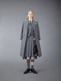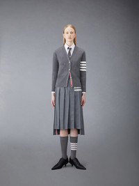 DETAILS & FIT Two Thom Browne emblems define our Milano Classic 4-Bar V-neck Cardigan—grosgrain trim and 4-Bar stripe detailing, both synonymous with the brand. Presented in cotton crepe fabric, this cardigan exudes sophistication. V-neckline Front button closure with striped grosgrain placket 4Bar stripe detail at left sleeve Slip Front pockets Buttoned side vents and cuffs with signature striped grosgrain trim signature striped grosgrain loop tab at back of neck Model is 5' 10" (178cm), wearing size 40 100% Cotton Made in Italy FKC207A-00219-035