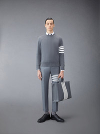 DETAILS & FIT A signature Thom Browne emblem defines our Cotton Crepe Pullover. Find our 4-Bar design at the left sleeve, Thom Browne’s most sought-after icon. Crew neckline stripe detail at left sleeve Ribbed cuffs and hem Buttoned side vents and cuffs with signature striped grosgrain trim Signature striped grosgrain loop tab at back of neck Model is 6' 1" (185cm), wearing size 1 100%Cotton Made in Italy MKA202A-00219-035 - CHEST: 100.0cm - SLEEVE LENGTH: 84.0cm - Shoulder Width: 43.0cm - WAIST: 96.0cm