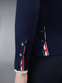 Navy Cashmere Classic 4-Bar Crewneck Cardigan
