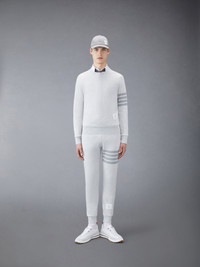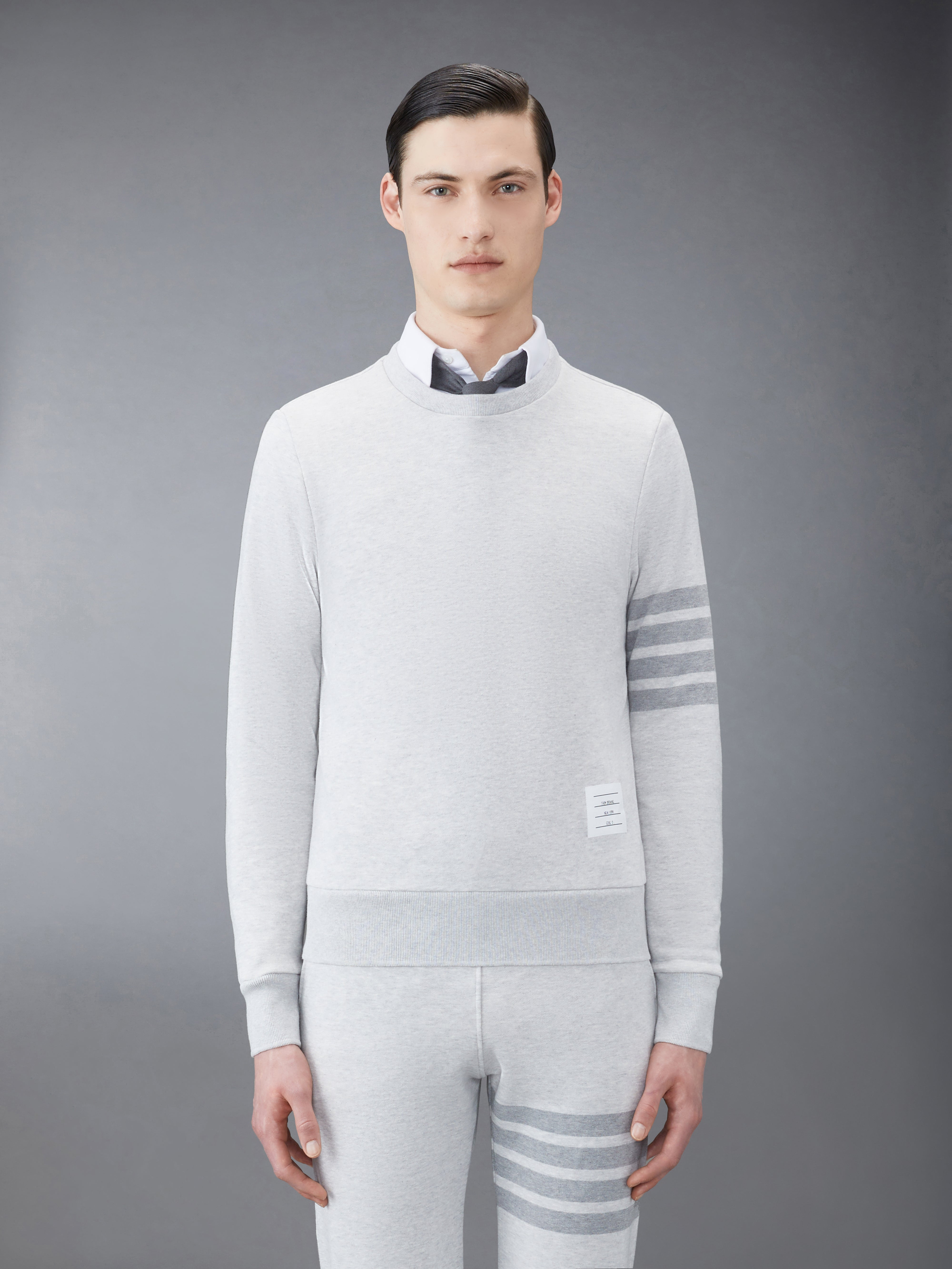 Pastel Grey Loopback Terry Tonal 4-Bar Relaxed Fit Crew Neck Sweatshirt
