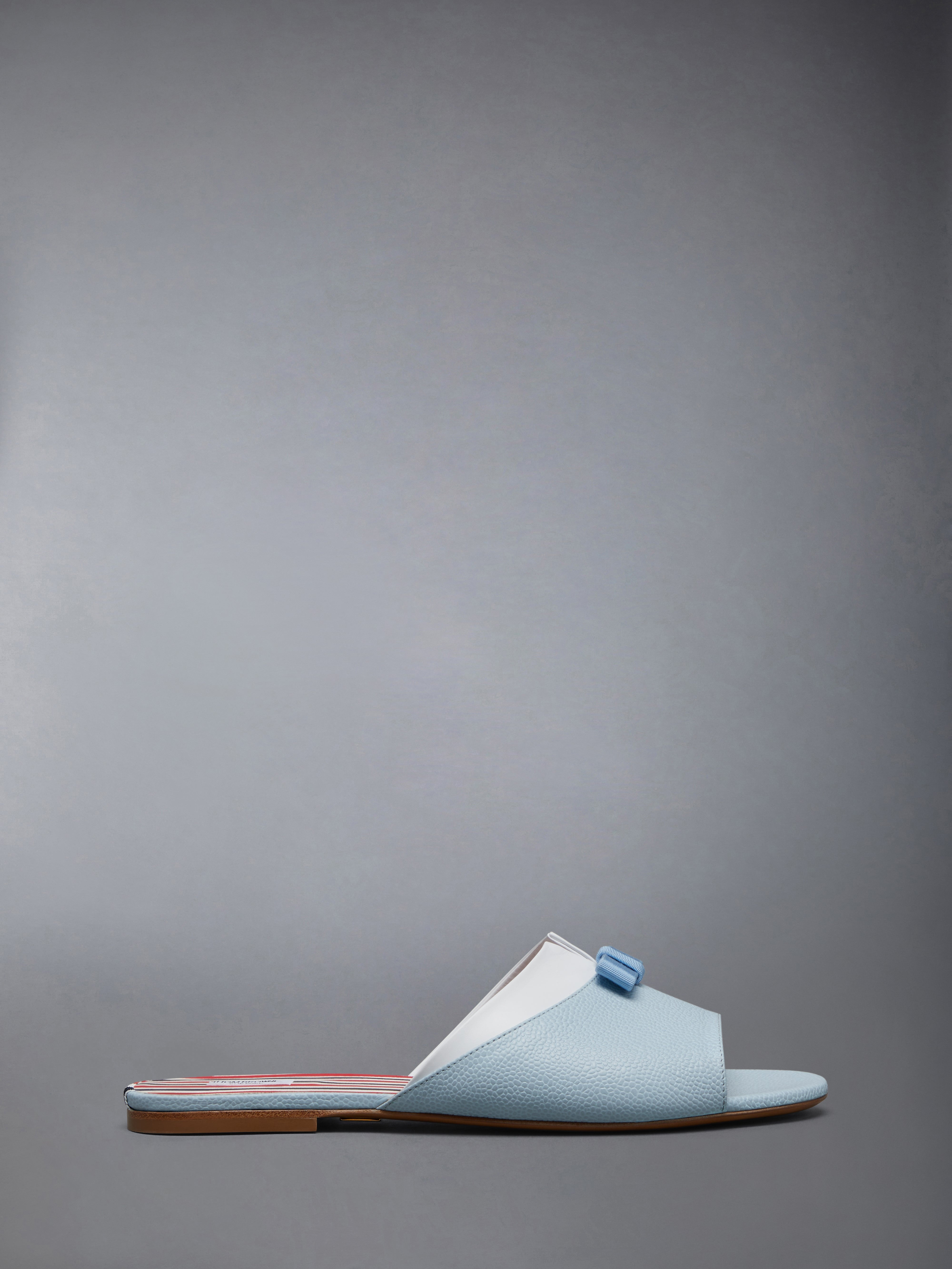An elegant sandal to elevate your spring wardrobe — our Pebble Grain Bow Claquette. Slip on Tricolor stripe lining Upper: 100% Calf Leather Sole: 100% Calf Leather Lining: 100% Lamb Leather Lining 2: 100% Goat Leather Made in Italy FFA002A-00198-452 FFA002A-00198-452