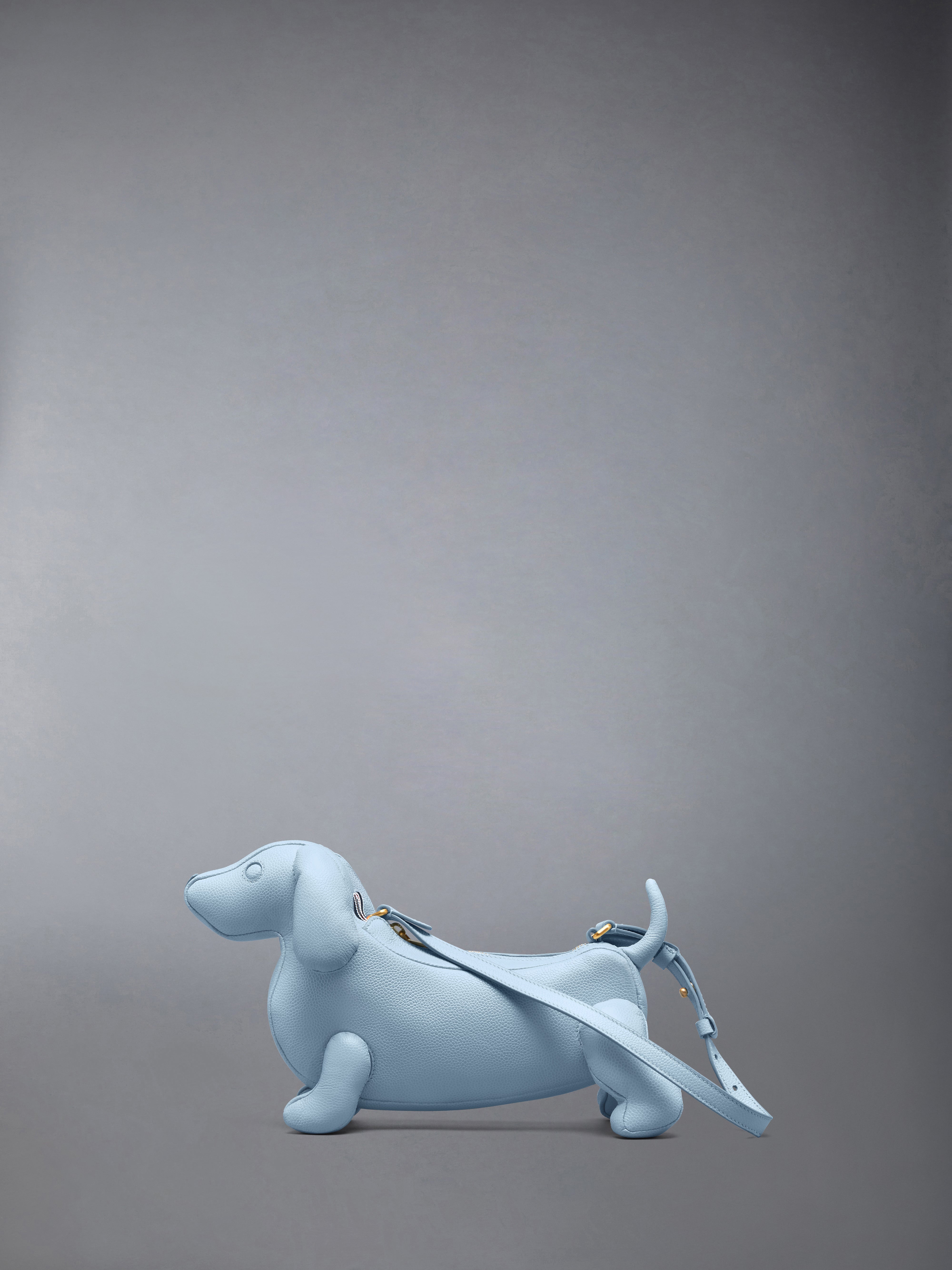 Our Pebble Grain Hector Baguette Bag. Heralded as the most famous dog muse in fashion, Thom Browne’s very own dachshund Hector served as the inspiration behind this quintessential piece. Brass zip top closure Adjustable leather shoulder strap Striped lining Measurements: Length 32 x Height 21 x Width 13 cm 100% Calf Full Grain Leather Lining: 100% Polyester Made in Italy FAP341A-00198-451