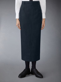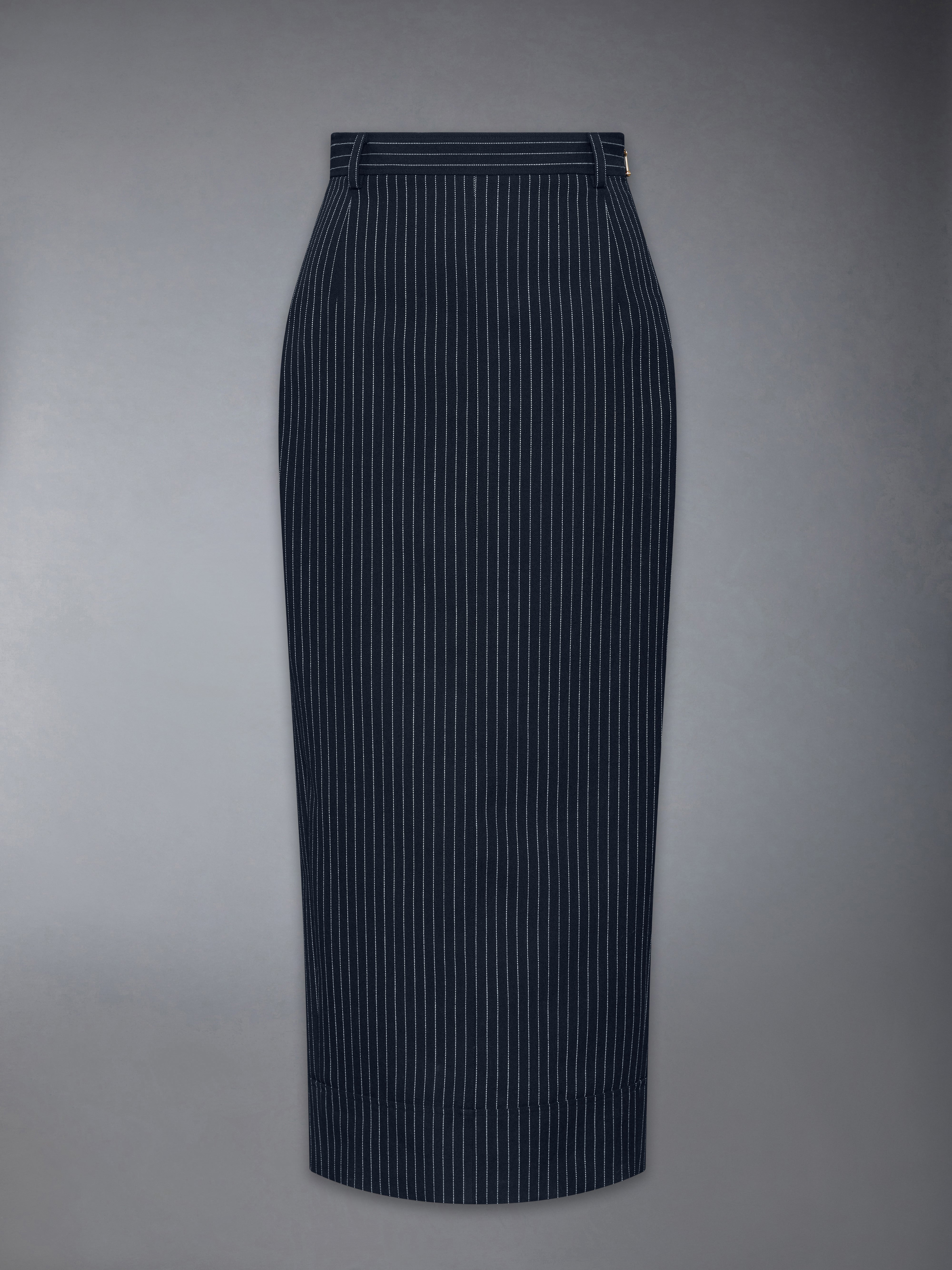 PINSTRIPE HIGH TWIST WOOL HIGH WAISTED PENCIL SKIRT