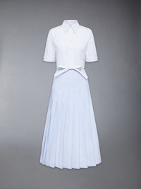 A classic shirtdress designed in honor of revolutionary tennis player Suzanne Lenglen, who transformed women's tennis attire with knee-length pleated skirts and cardigans, challenging the restrictive dress codes of her time. Her bold choices laid the foundation for the iconic tennis aesthetic we know today. This seasonal garment pays homage to Lenglen's legacy, symbolizing independence, individuality, and timeless sophistication. Front button closure Oversized bow at rear Pleated back yoke with locker loop Signature striped grosgrain loop tab Model is 5'10" (178 cm), wearing size 40 100% Cotton Made in Italy FDSF26C-F0916-480 FDSF26C-F0916-480