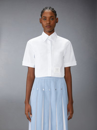 PINSTRIPE POPLIN CROPPED SHORT SLEEVE SHIRT