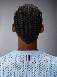 Inspired by preppy American country life, this elegant tee features a romantic pointelle stitch and signature 4-bar detailing. A versatile piece, it pairs effortlessly with any of our trousers or dress shirts for a sophisticated yet casual look. 4-bar detailing Buttoned side vents with signature striped grosgrain trim Signature striped grosgrain loop tab Model is 5'10" (178 cm), wearing size 40 100% Cotton Made in Italy FKA495A-Y3017-480 FKA495A-Y3017-480