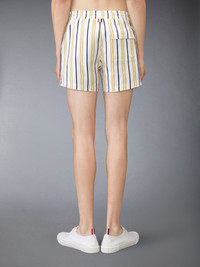 These timeless swim shorts in preppy repp stripes evoke the charm of American country life and the simple joys of summer— swimming and good company. Drawstring waistband Back flap pocket Name tag applique Signature striped grosgrain loop tab Model is 6'1" (185cm), wearing size 0 100% Polyester Lining: 100% Polyester Made in Italy MTT032A-F1167-720