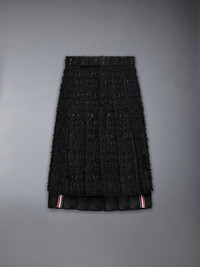 This skirt reimagines uniform dressing through the lens of festive formality. Crafted in satin ribbon tweed, one of the season’s most intricate materials, its surface is woven from ten different yarns including satin ribbon and grosgrain for a richly dimensional and subtly luminous finish. Coordinate with the Frayed Satin Ribbon Tweed Utility Jacket. Knee length Tab closure with zip fly Adjustable backstrap with anchor-engraved buttons Side vents with RWB grosgrain trim Stepped hem Tricolor lining Signature striped grosgrain loop tab Model is 6'1" (185cm), wearing size 0 55% Polyester, 37% Cotton, 7% Polyamide, 1% Acrylic Combo 1: 100% Cotton Lining: 100% Cupro Made in Japan MGC065T-F1091-001