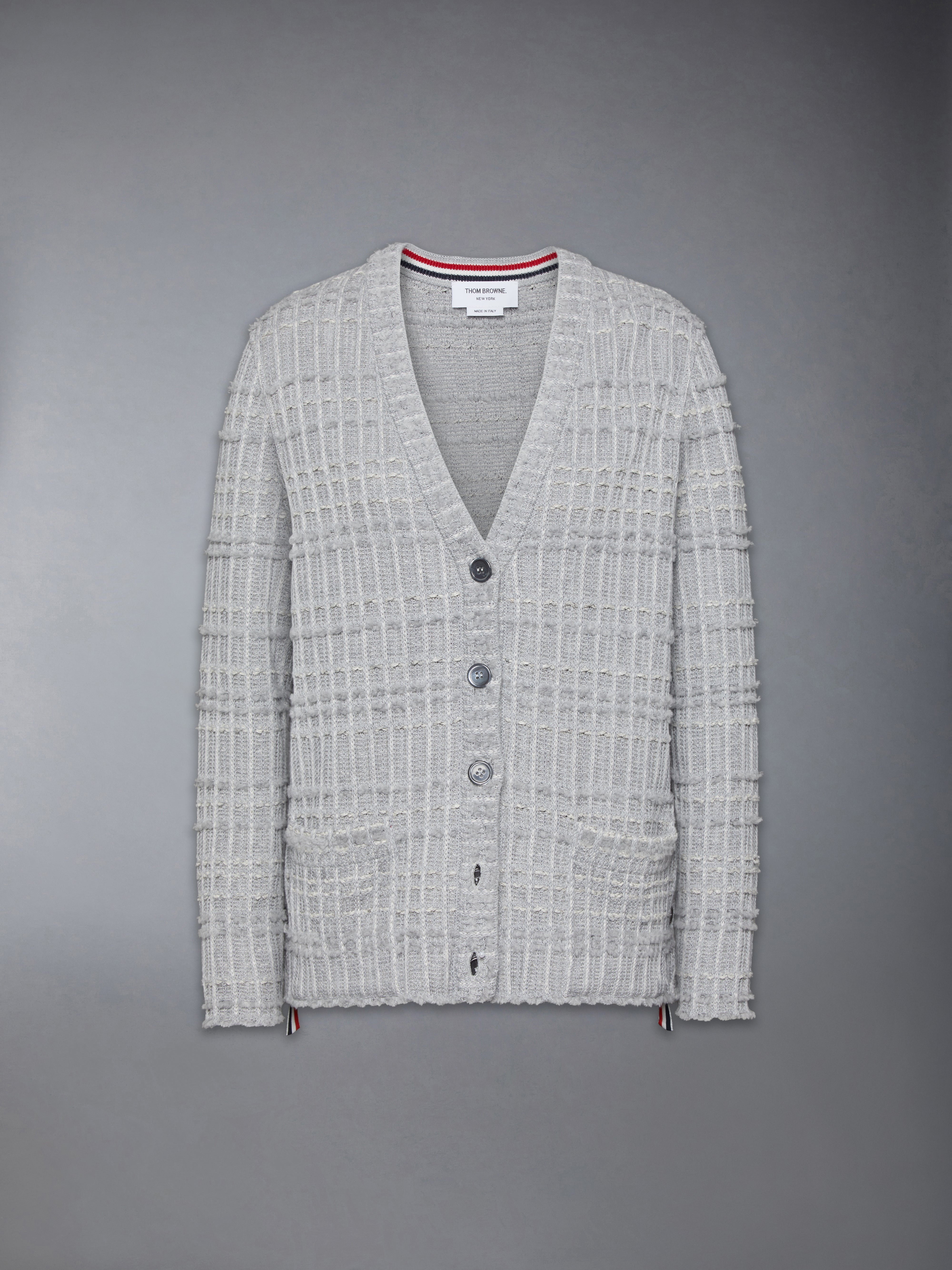 SEERSUCKER KNIT TWEED JACQUARD V NECK CARDIGAN