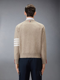 Signature Thom Browne luxury. Crafted from ultra-warm Shetland wool, this cardigan balances sophistication and function, complete with two front pockets to keep essentials close at hand. Pair it with our Washed Cotton Utility Cargo Trousers. Front button closure with striped grosgrain placket 2 Front slip pockets 4-bar detailing Buttoned side vents with signature striped grosgrain trim Buttoned cuffs with signature striped grosgrain trim Signature striped grosgrain loop tab Model is 6'1" (185cm), wearing size 1 100% Wool Made in Italy MKC613A-Y1026-250