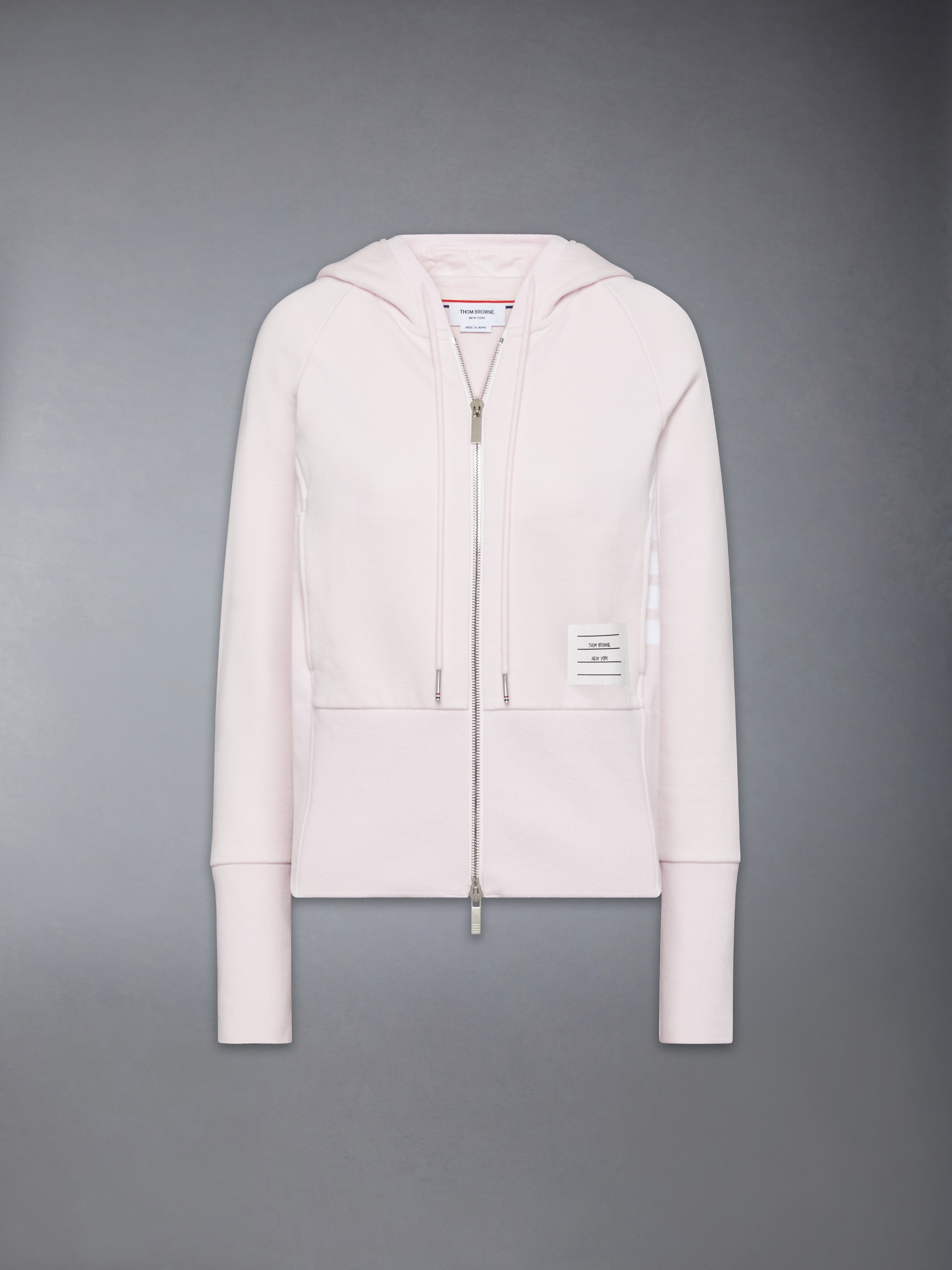 Leisurewear made artful. A signature Thom Browne emblem defines this piece — 4-Bar detailing. Made with a zip-up closure for easy on/off wear. Pair it with our Classic 4-Bar Jersey Sweatpants. Front zip closure 4-bar detailing Name tag applique Side slip pockets Drawstring hood Model is 5'10" (178 cm), wearing size 40 100% Cotton Made in Japan FJT382A-03037-680