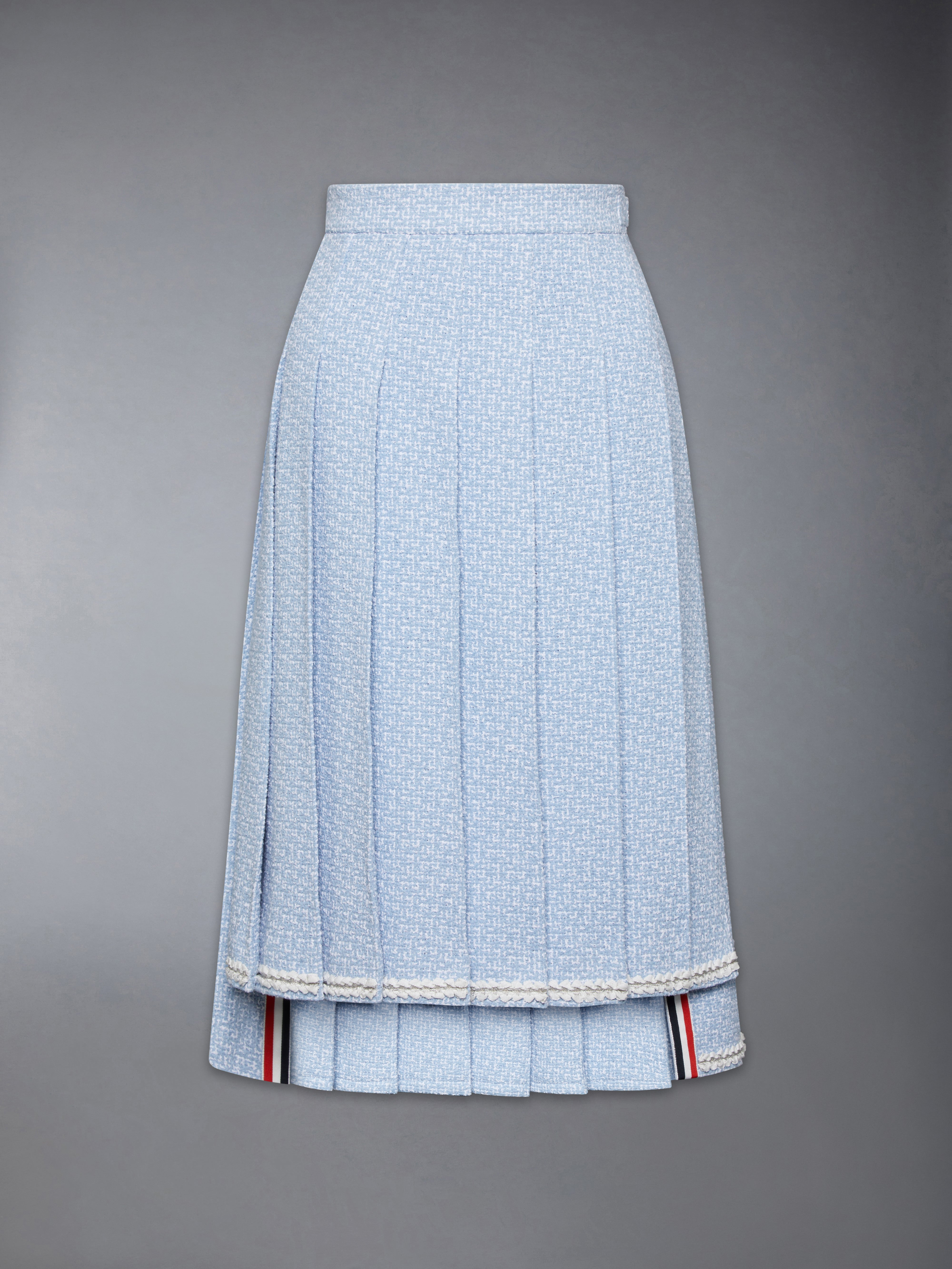 SOLID TWEED KNEE LENGTH PLEATED SKIRT