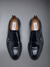 A sleek, polished addition to your collection, these monk strap shoes pair effortlessly with our suiting or dress shorts. Pair them with our Cotton 4-Bar Fun Mix Calf Socks. Monkstrap closure Signature striped grosgrain loop tabs at heels Upper: 100% Calf Leather Sole: 100% Rubber Lining: 100% Calf Leather Made in Italy MFG018C-L0043-415