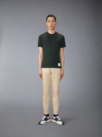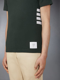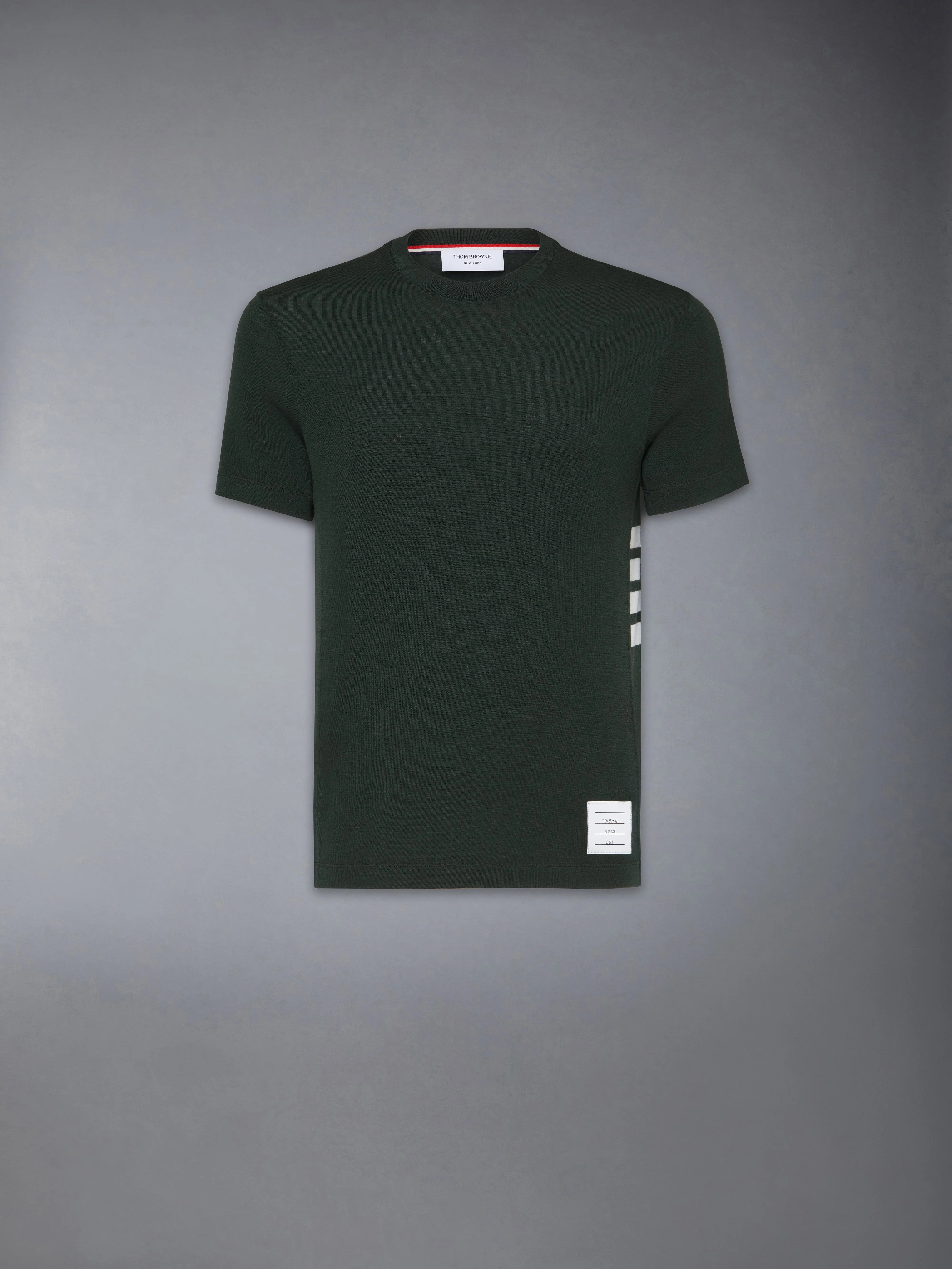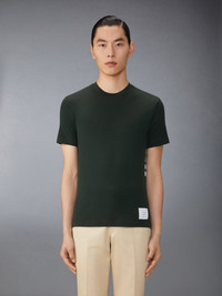 DETAILS & FIT A signature Thom Browne emblem defines this luxe tee — iconic 4-Bar detailing. Crafted in breathable wool jersey fabric for everyday wear. 4-bar detailing Name tag applique above hem Signature striped grosgrain loop tab Model is 6' 1" (185cm), wearing size 1 97% Wool, 3% Elastane Combo1: 97% Wool, 3% Elastane Made in ITALY MJS219A-J0149-350