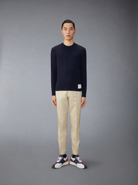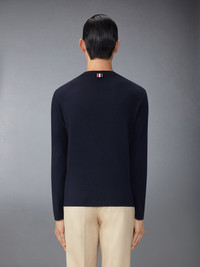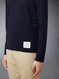 DETAILS & FIT Leisurewear made artful. A signature Thom Browne emblem defines this piece — iconic 4-Bar detailing. Crafted in breathable wool jersey fabric for everyday wear. 4-bar detailing Name tag applique above hem Signature striped grosgrain loop tab Model is 6' 1" (185cm), wearing size 1 97% Wool, 3% Elastane Combo1: 97% Wool, 3% Elastane Made in ITALY MJS218A-J0149-415