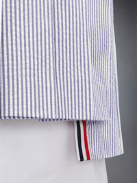 DETAILS & FIT Inspired by East Coast preppy icons but reimagined with inventive proportions and quality craftsmanship, our Classic Seersucker Pleated Mini Skirt is a bold summer staple. Dropped back hem with signature striped grosgrain trim Adjustable Buttoned side tab closure Signature striped grosgrain loop tab at back waist ClassicFit 1 Model is 5' 10" (178cm), wearing size 40 100% Cotton Lining: 100% Cupro Made in Italy FGC402V-00572-415