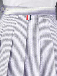 THIGH LENGTH DROPPED BACK PLEATED SKIRT IN SEERSUCKER