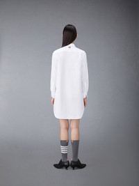 DETAILS & FIT Our Oxford Grosgrain Placket Thigh length Point Collar Shirtdress. Crafted from the finest fabric, wear this silhouette alone as an everyday staple or as a base layer for suiting. Front button closure with striped grosgrain placket Button down point collar Patch chest pocket Name tag applique above curved hem Buttoned cuffs Pleated back yoke with locker loop Signature striped grosgrain loop tab at back of neck Model is 5' 10" (178cm), wearing size 40 100% Cotton Made in Italy FDS002E-F0313-100
