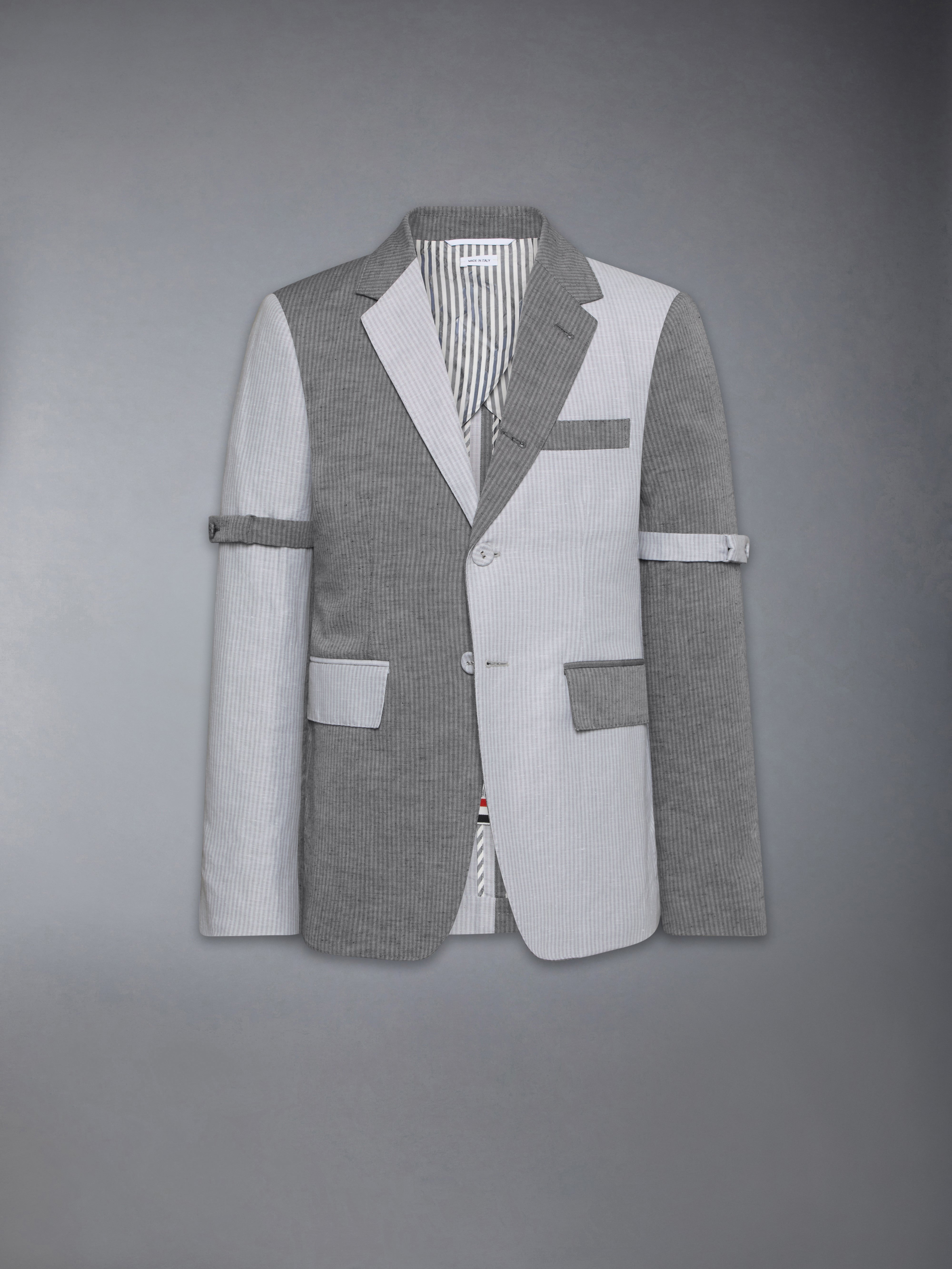 Contrasting grey tones symbolize transition and transformation—reflecting changing seasons and new beginnings. Crafted from luxurious linen-cotton fabric, this statement sport coat is perfect for cool summer days and crisp fall nights. Complete the look with any of our signature trousers. Front button closure Single chest pocket 2 Front flap pockets Buttoned cuffs with signature striped grosgrain trim Corduroy buttoned armbands Interior pocket with name tag Signature striped grosgrain loop tab Fit 1 Model is 6'1" (185cm), wearing size 1 60% Linen, 40% Cotton Combo 1: 60% Linen, 40% Cotton Lining: 100% Cupro Made in Italy MJC403F-F0940-055 MJC403F-F0940-055