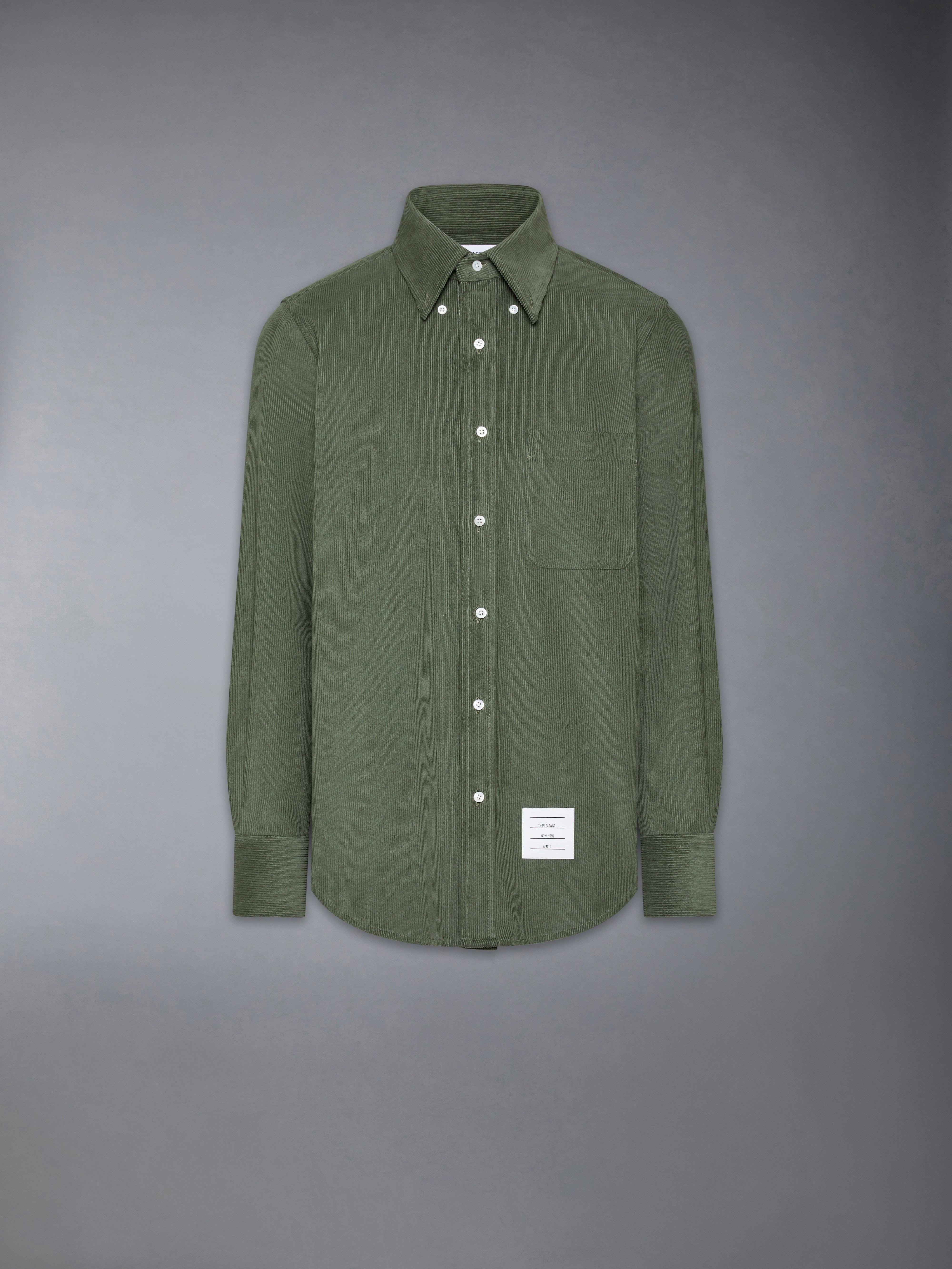 A classic button-down gets a luxurious upgrade with rich corduroy, delicately brushed for an exceptionally soft feel and sheen. Hallmarks of traditional menswear tailoring appear throughout, including suede elbow patches that refine this everyday essential. Pair it with our Washed Cotton Utility Cargo Trousers for a casual, sharp look. Front button closure Chest patch pocket Nametag applique Pleated back yoke with locker loop Signature striped grosgrain loop tab Straight fit Model is 6'1" (185cm), wearing size 1 100% Cotton Made in Italy MWL272A-F0920-330