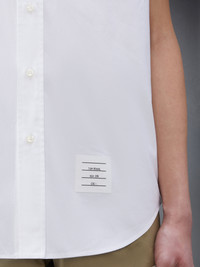 White Cotton Poplin Short Sleeve Satin Weave 4-Bar Shirt