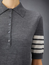 DETAILS & FIT Inspired by East Coast preppy icons but reimagined with inventive proportions and quality craftsmanship, our Wool 4-Bar Relaxed Polois a sophisticated take on a classic silhouette. Partial button placket Spread polo collar Buttoned side vents with signature striped grosgrain trim Signature striped grosgrain loop tab at back of neck Model is 5' 10" (178cm), wearing size 40 100% Virgin Wool Made in Italy FKP053A-Y1014-035