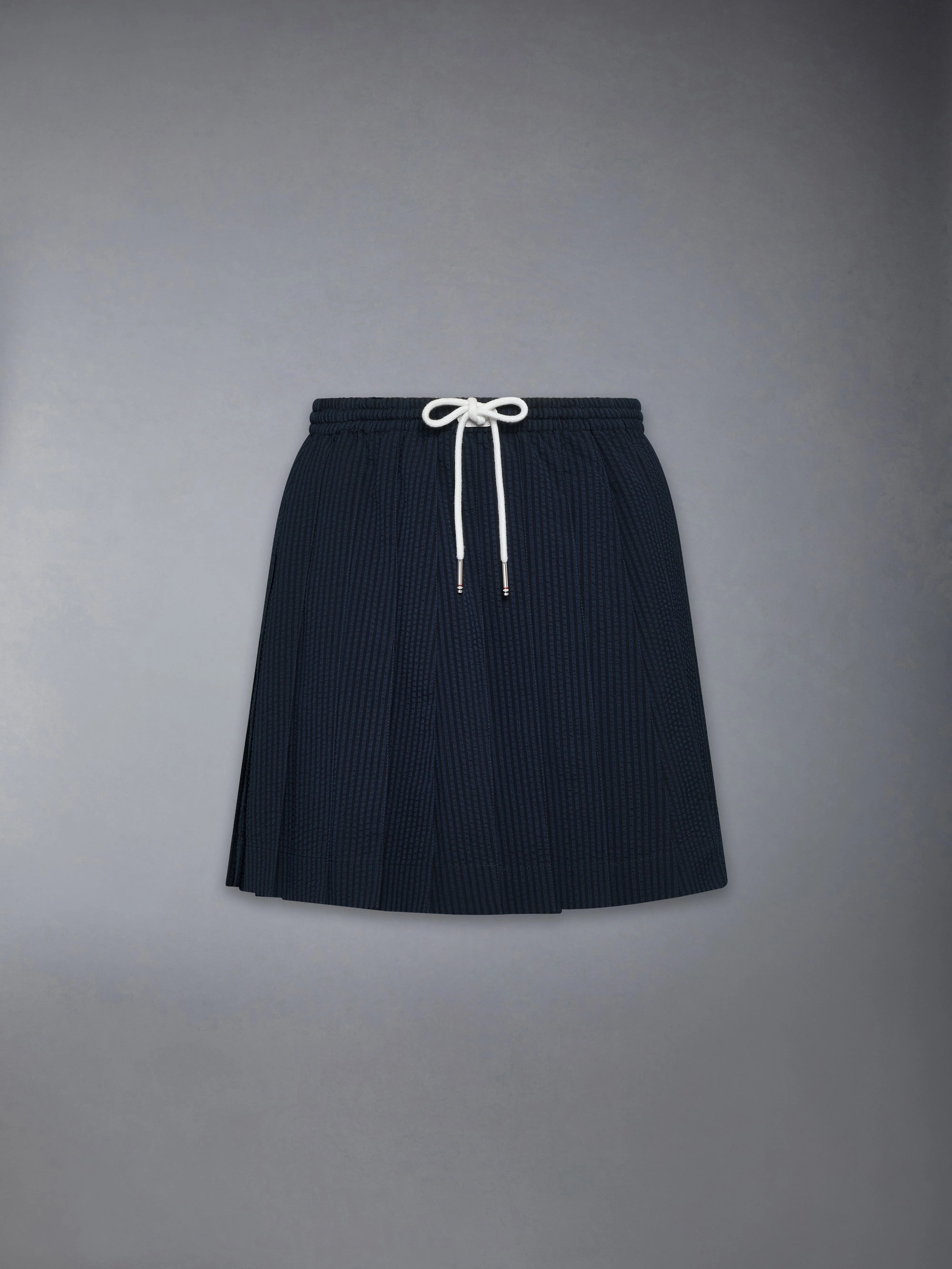 WOOL SEERSUCKER DRAWSTRING PLEATED MINI SKIRT